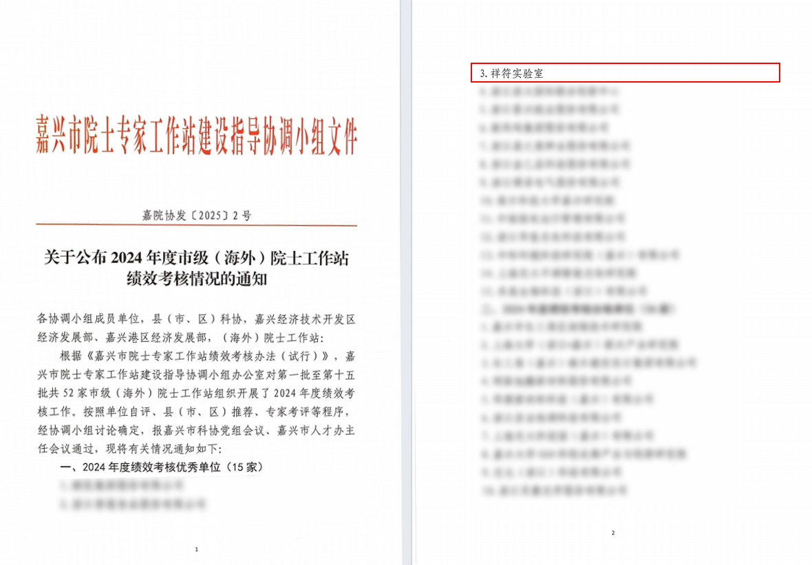近日,嘉兴市院士专家工作站建设指导协调小组办公室公布了2024年度市级(海外)院士工作站绩效考核结果,祥符实验室嘉兴市(海外)院士工作站凭借卓越的建设成效和突出的创新成果,获评优秀等级。