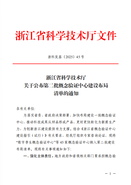 2025年12月8日,浙江省科学技术厅公布第二批概念验证中心建设布局清单,祥符实验室“高灵敏生物传感概念验证中心”成功入选。