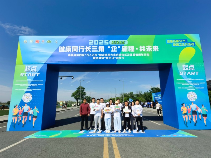 春意盎然踏歌行,健康同行启新程。4月26日上午,嘉善县第四届"万人万步"健走激励大赛在祥符荡畔火热启幕,随着一声清脆的鸣笛声,实验室15位徒步爱好者与近400名参赛者一同踏上“健康同行长三角”徒步之旅,共同用脚步丈量生态绿道,以行动诠释健康理念。
