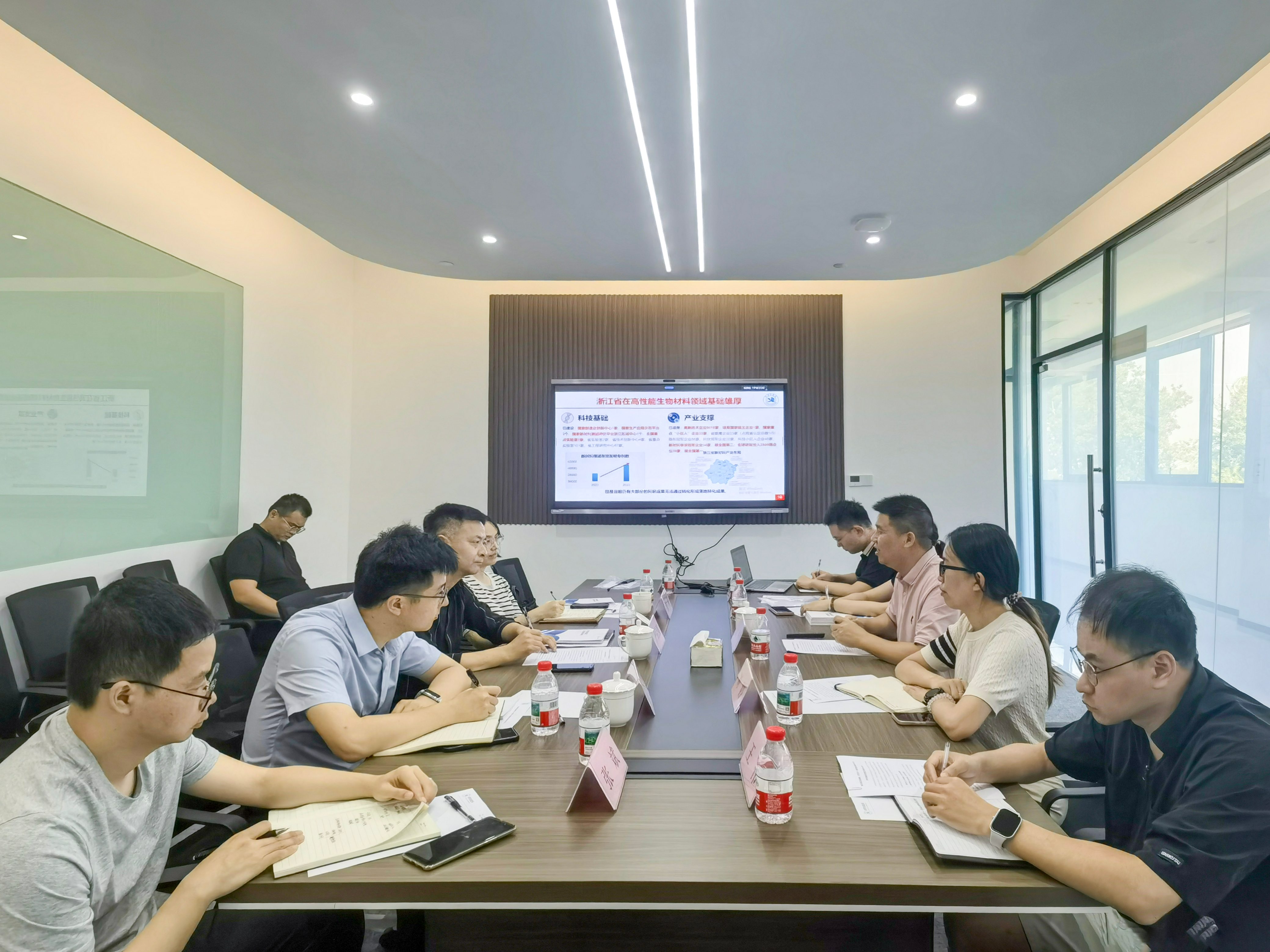 2025年8月1日,嘉兴市经信局副局长严启强、技术装备处处长陈樾、市政府办公室李剑一行赴祥符实验室进行中试平台专题调研,深入了解实验室在高性能生物材料中试平台建设情况。祥符实验室副主任沈锋及相关负责人陪同参观调研并座谈。