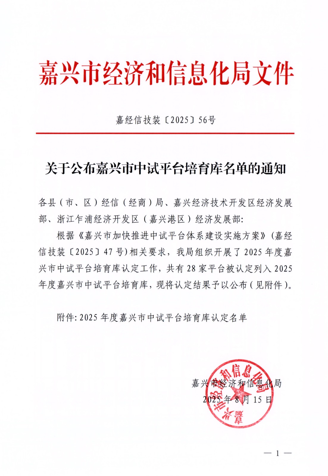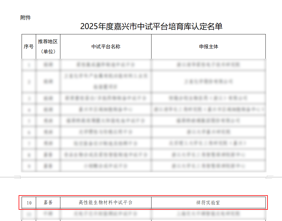 近日,嘉兴市经济和信息化局公布《关于2025年度嘉兴市中试平台培育库拟认定名单的公示》,全市共有28家中试平台入选,其中祥符实验室“高性能生物材料中试平台”(以下简称“平台”)成功入选。