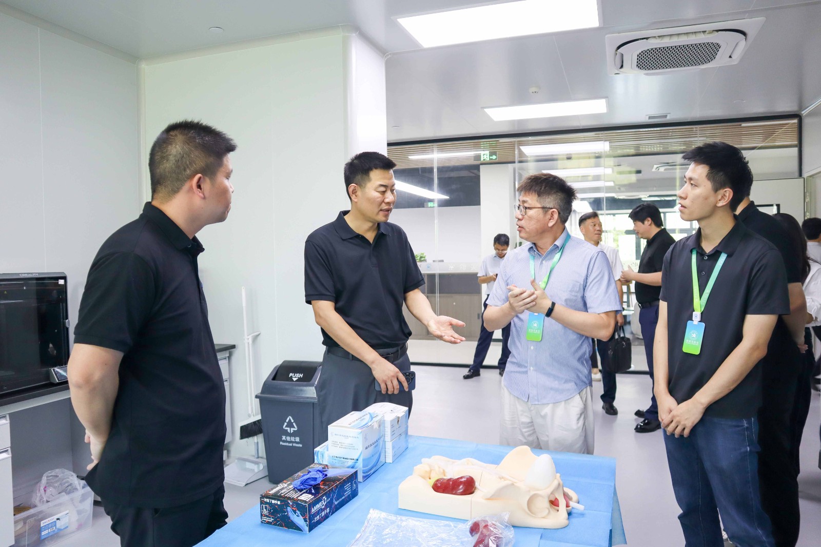 在临床模拟手术实验室,吕忠飞一行详细了解了项目组研发的专科系列产品及应用场景。项目组依托自研仿生材料和定制化制备,开发出一系列高仿真手术训练模拟场景,覆盖泌尿外科、神经外科普外科等多个专科,可帮助医生在高度逼真手术环境中完成高效、低成本、无风险的技能训练。