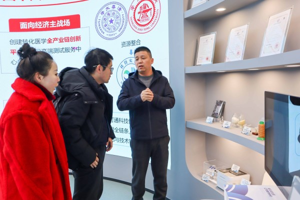 会前,来访嘉宾一行实地参观了实验室展厅、高性能生物材料中试平台、高灵敏生物传感概念验证中心和公共技术服务平台,详细了解了实验室的建设背景、发展定位、核心技术平台及科研成果转化情况。